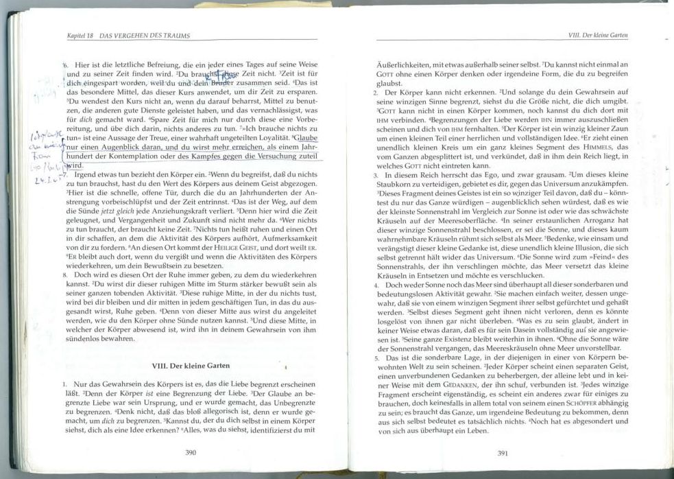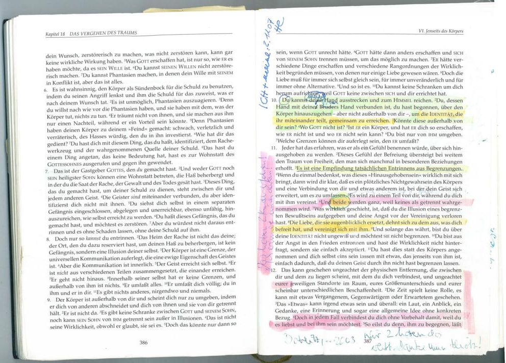 * dies gilt NICHT für den Autor vom Kursbuch (Ein Kurs in Wundern, siehe ich und du); ich studierte es jahrelang und erlebte es auf geistiger, menschlicher, seelischer, spiritueller, psychischer und biologischer Ebene; hierzu gehören hunderte von Seiten schriftlicher Notizen (Seite1 / Seite2 / Seite3 / Seite4) sowie ein Brief an 3 Verlage und Erhard Freitag (meine Abrechnung) |